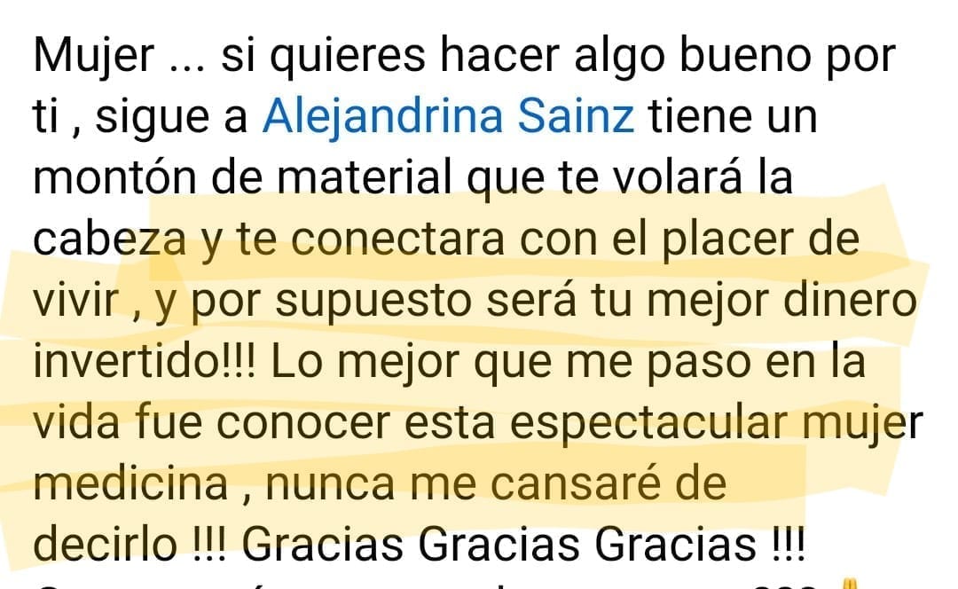Soy Alejandrina Sainz, madre de tres hijos de 22, 20 y 15 años, soy una apasionada del despertar del poder femenino. A mis 40 años, he recorrido un camino profundo de autoconocimiento, explorando la energía, la sexualidad sagrada y el merecimiento como herramientas para transformar vidas.
